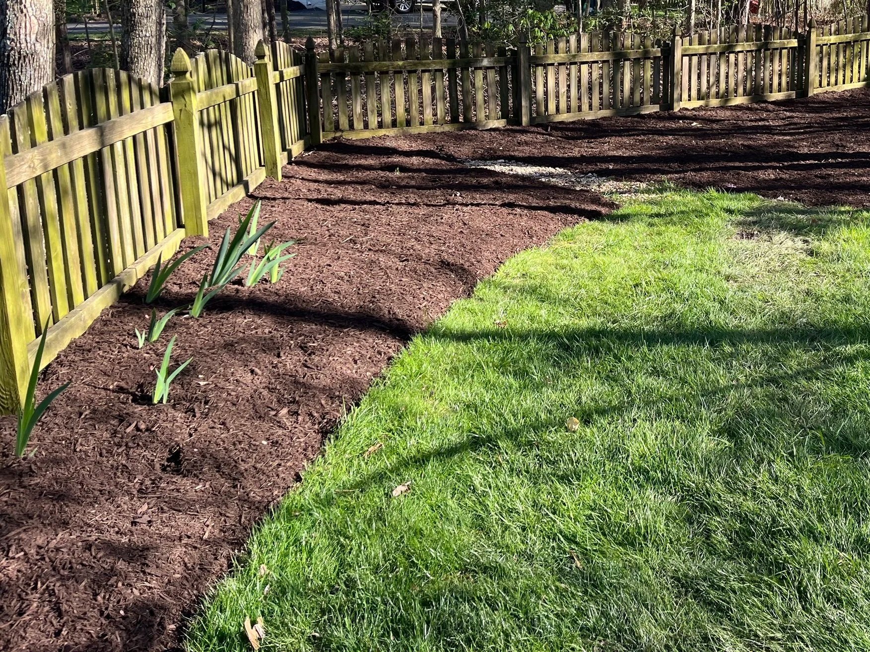 For most residential properties in the Twin Hickory, Wyndham, and Glen Allen area, shredded hardwood or double-shredded hardwood mulch tends to be the go-to for both aesthetics and performance.
